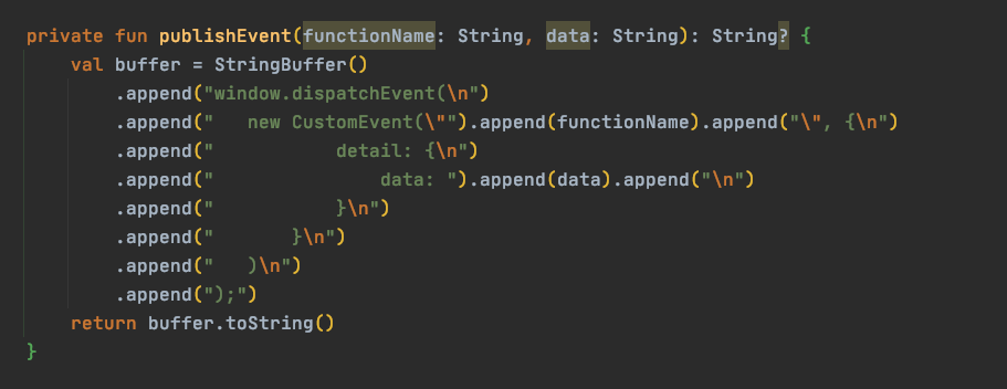 webview.evaluateJavascript를 통해 호출이 되었다.