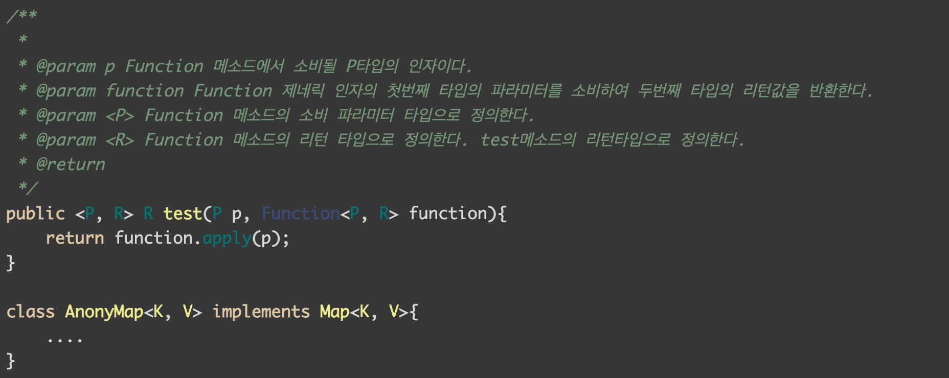 두개 이상의 다른 타입의 변수를 Generic으로 정의하려면 <T, K>처럼 두개의 변수를 써주면 됩니다.