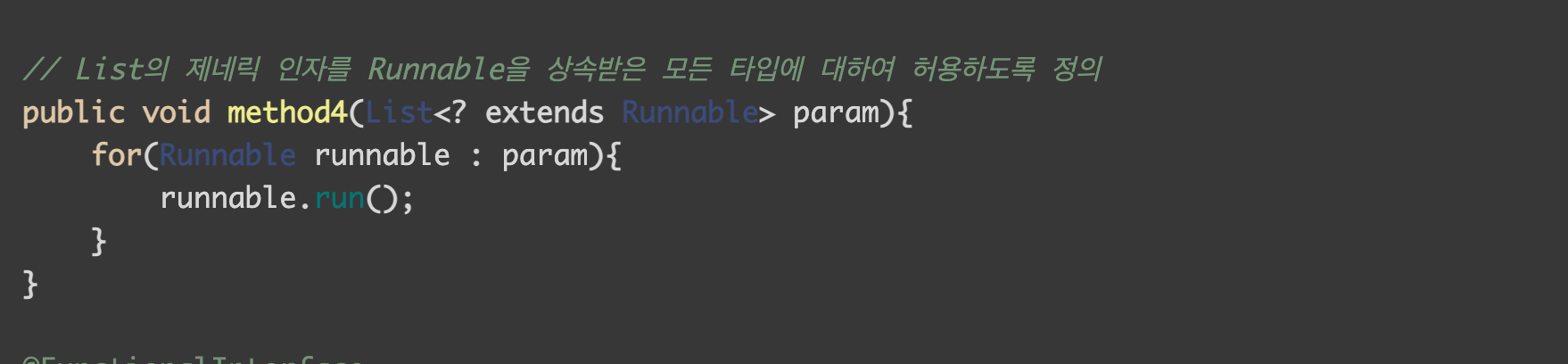 클래스는 1개의 클래스만 상속받을 수 있기 때문에, 2개 이상의 제약은 1개의 클래스와 1개 이상의 인터페이스가 됩니다.