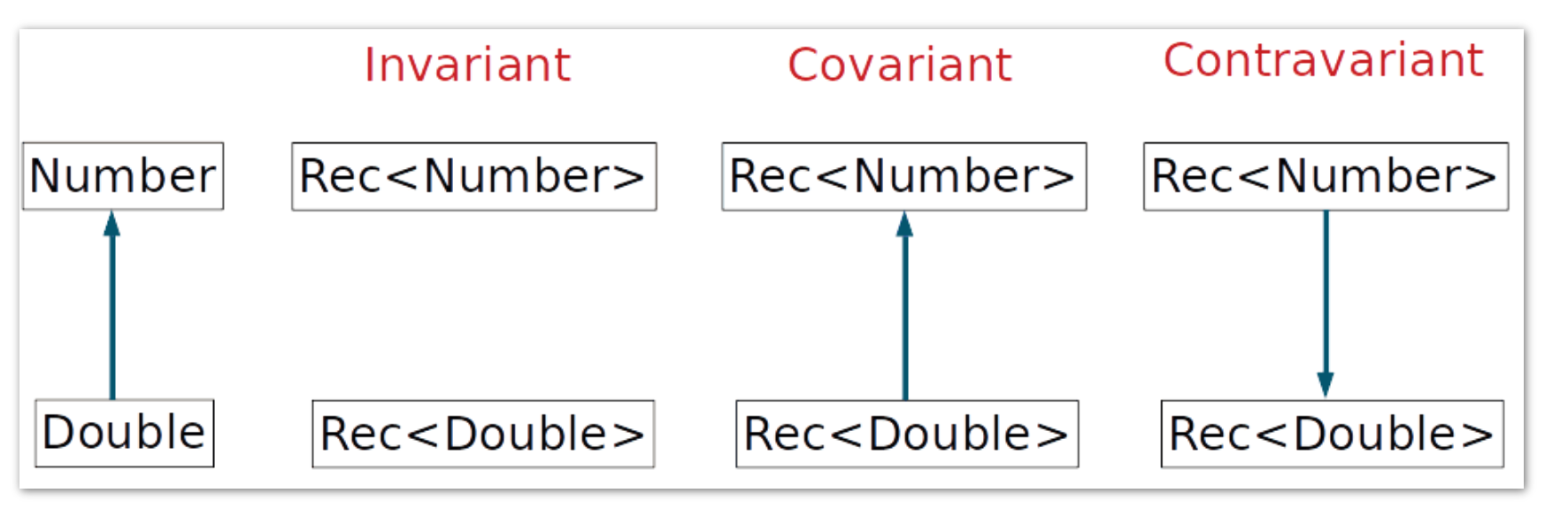 Rectangle<Dobule>가 Rectangle<Number>의 super class라면 Contravariance(반공변성)라고 합니다.