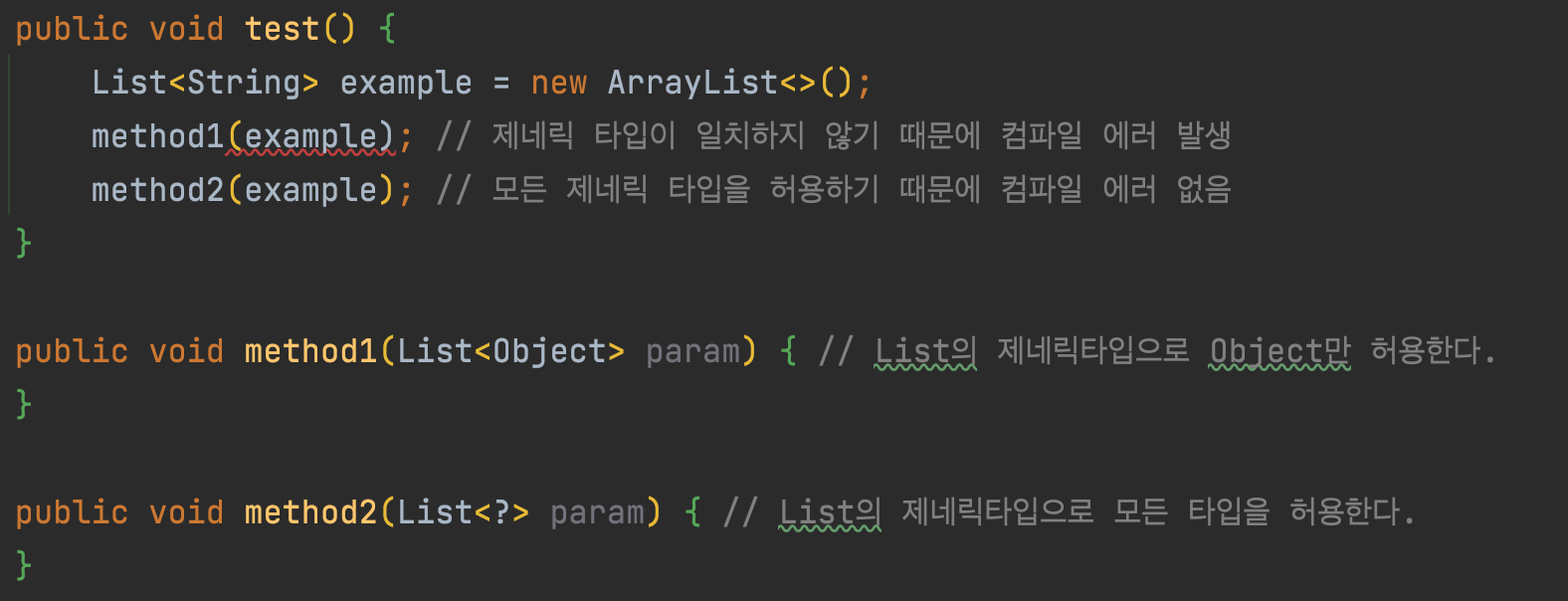 하지만, 와일드 카드를 사용한다면 컴파일러가 유연하게 대처하도록 할 수 있다.