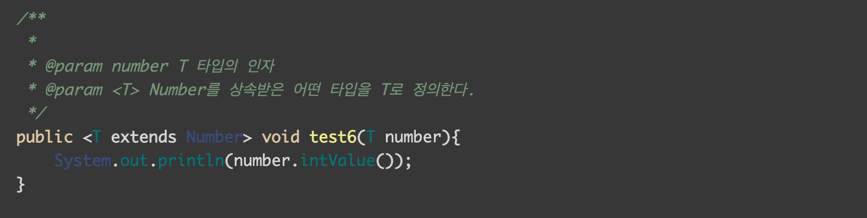 숫자가 아닌 인자도 허용이 되기 때문에, <T: Number>는 super type이 Number인 객체만 T로 받도록 허용합니다.