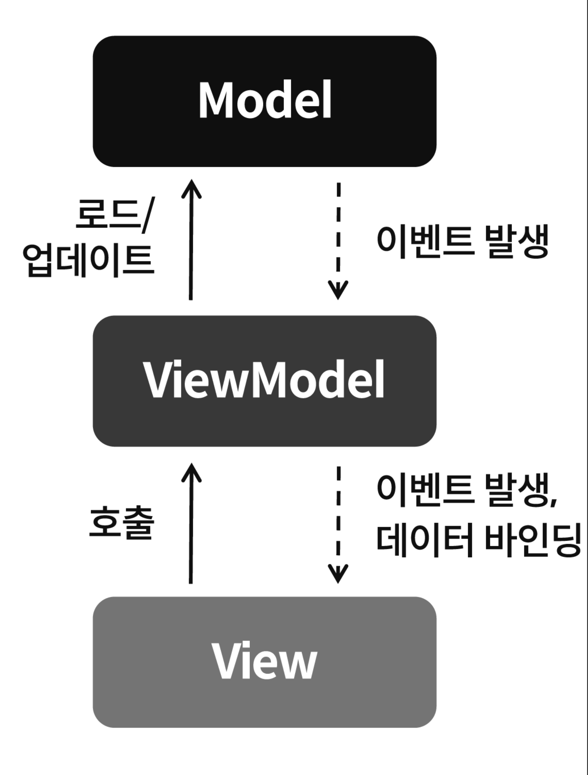 - 프리젠터와의 차이점은 뷰모델이 뷰를 제어하지 않는다는점