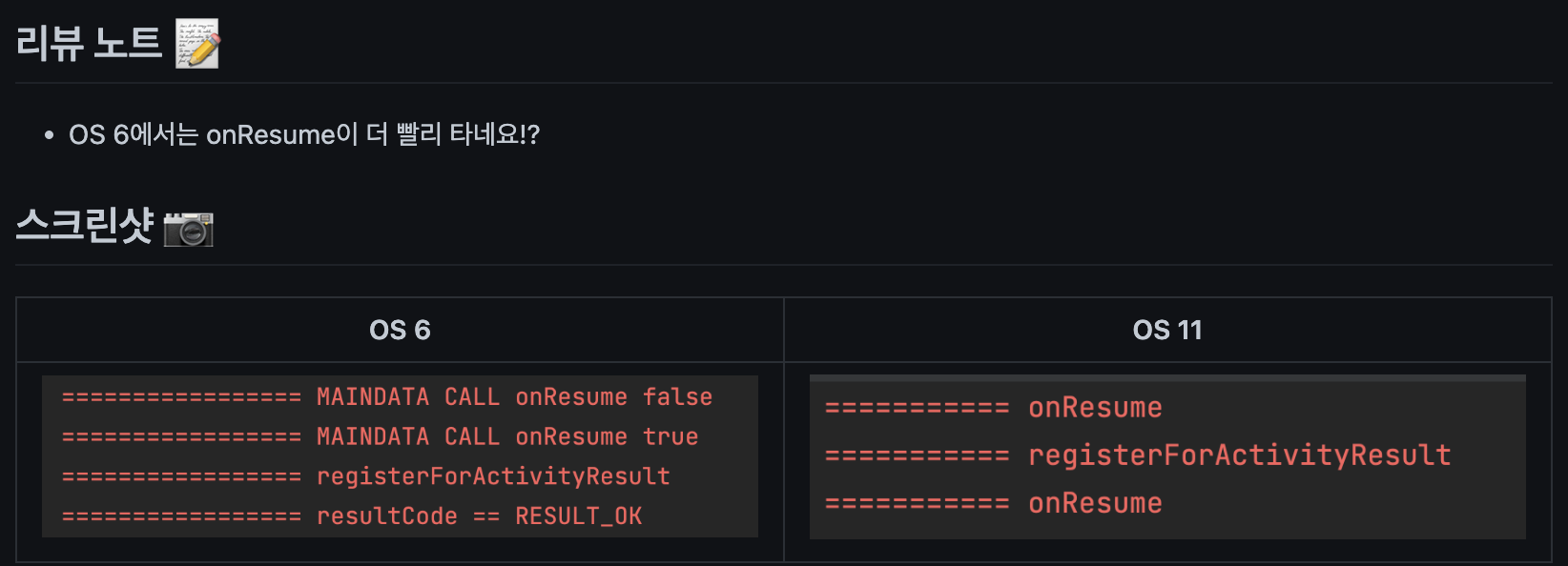 OS 6에서는 onResume이 registerForActivityResult보다 더 먼저 호출되어 문제가 발생하였습니다!