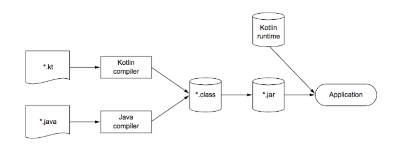 - 코틀린, 자바 각각의 컴파일러가 바이트 코드(.class) 파일로 만든다.