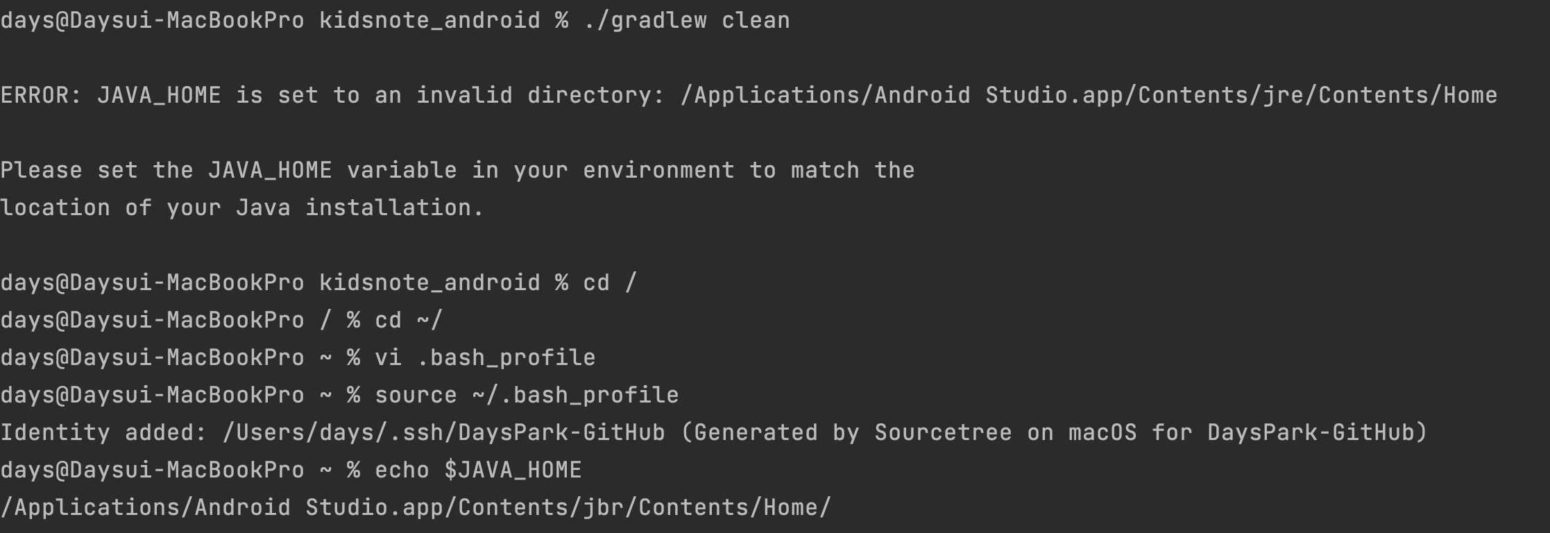 ERROR: JAVA_HOME is set to an invalid directory: /Applications/Android Studio.app/Contents/jre/Contents/Home