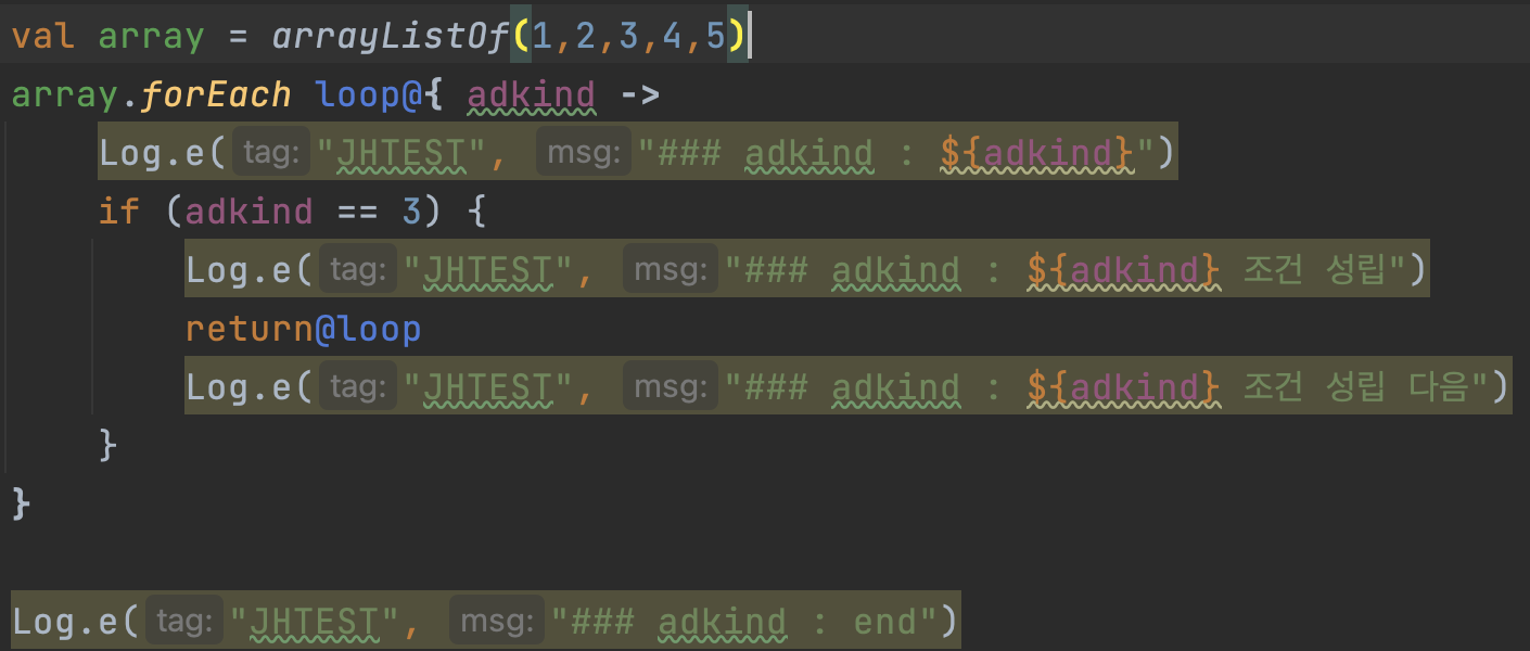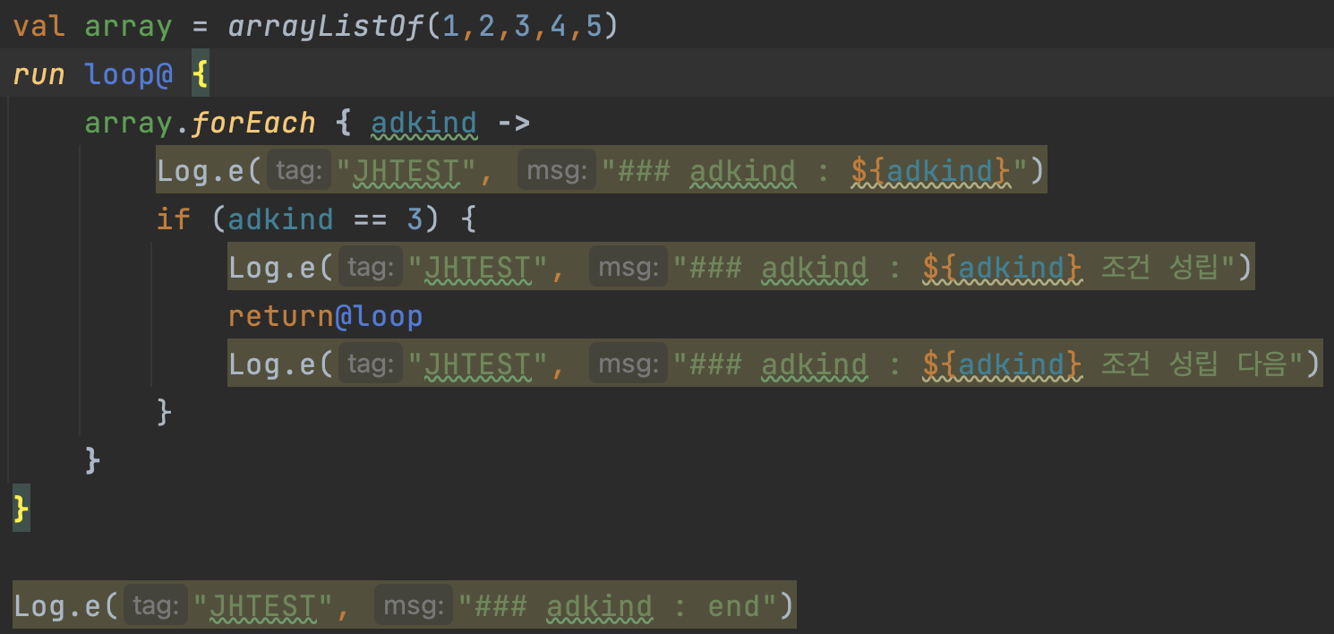로컬 return : 람다의 실행을 끝내고 코드 실행을 계속 이어갑니다.