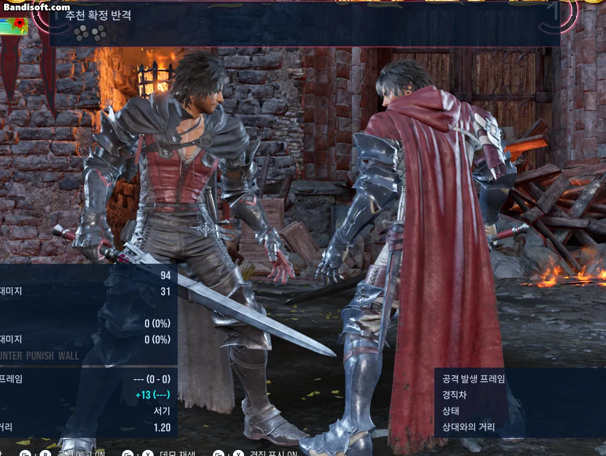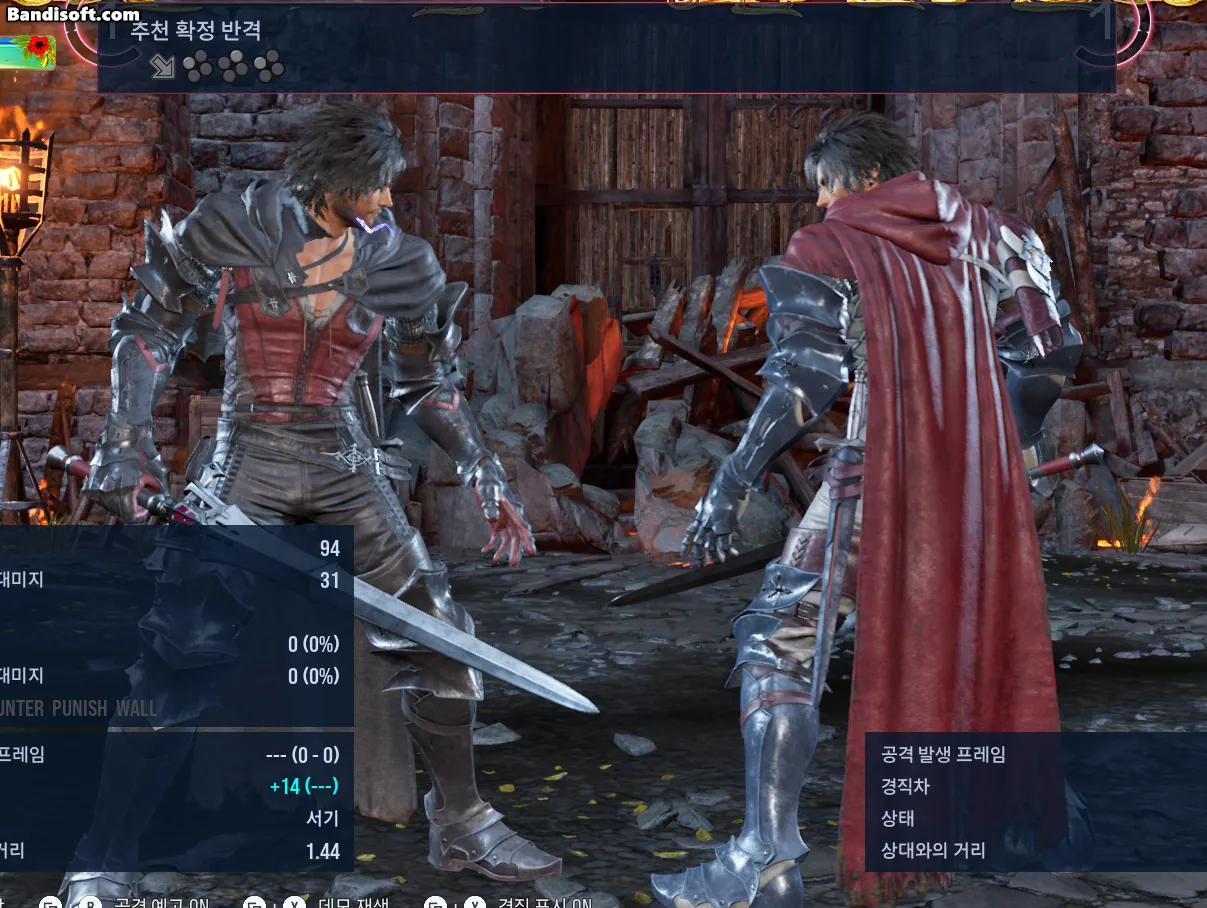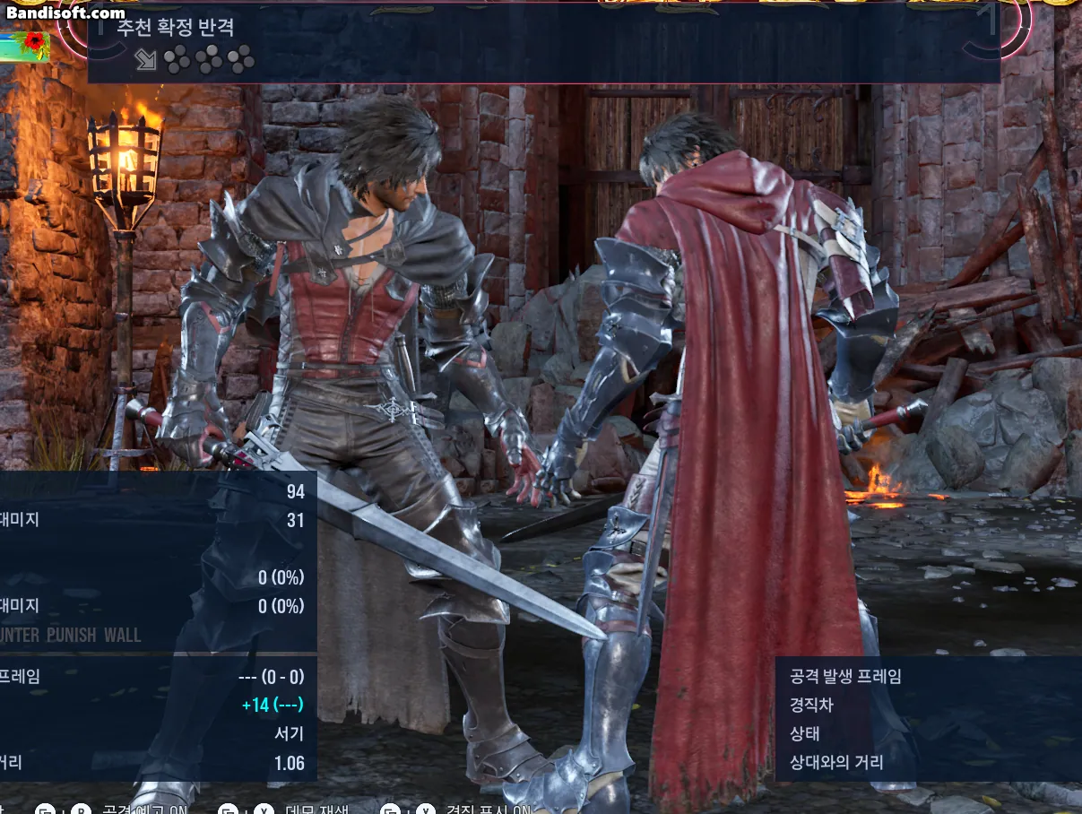 숫자 : 상대 기술 막았을 때 딜캐 프레임